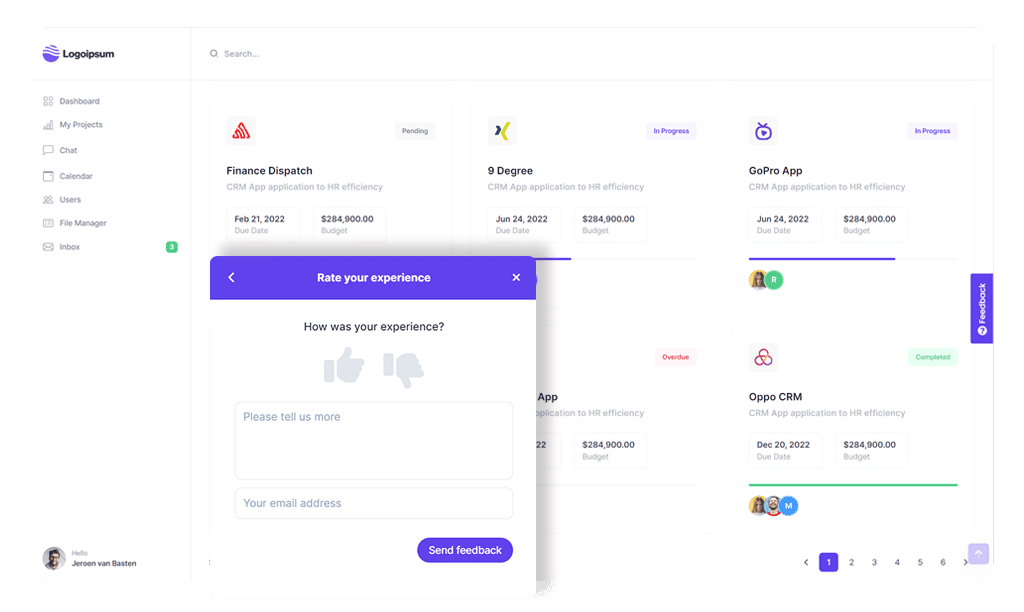 Userbackโs micro surveys let you know what users really think so you can grow faster. During software testing you can ask users and test teams specific questions about future development, or current performance of your website or web application and know for sure with micro surveys.